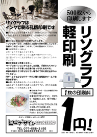 印刷の印刷料は1枚1円から、用紙代はサイズ別に別途掛かりますが、コピーよりお得です!